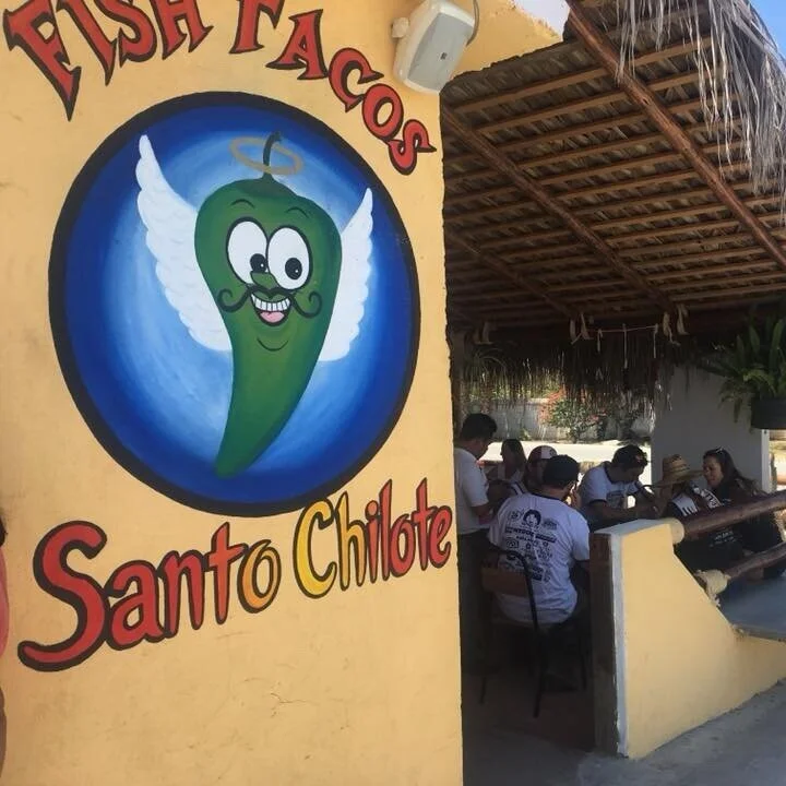 (The Saint, or Holy, Chile) For an excellent budget choice that has fantastic tacos and margs, you must try El Santo Chilote. Located right on the corner of the main road in Todos Santos, tacos here are each $30 pesos all day, every day. Their portion sizes and quality rival their more expensive neighbors, and they’re sure to catch on someday, so definitely check them out! They do a taco bar style for toppings, so you get to build your taco of choice just how you like it.
